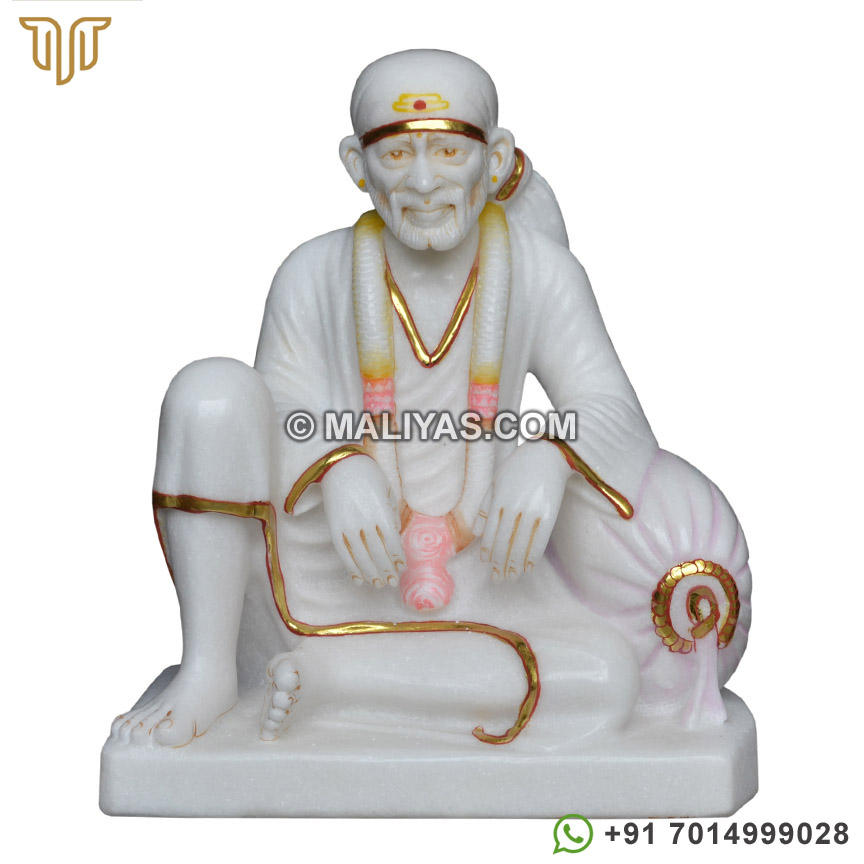 รูปปั้นไวท์มาร์เบิล ดวาร์กามัย ไซบาบา | รูปปั้นหินอ่อนชิร์ดี ไซบาบาแกะสลักด้วยมือพร้อมพวงมาลัยสำหรับวัดและบ้าน - มาลียาส