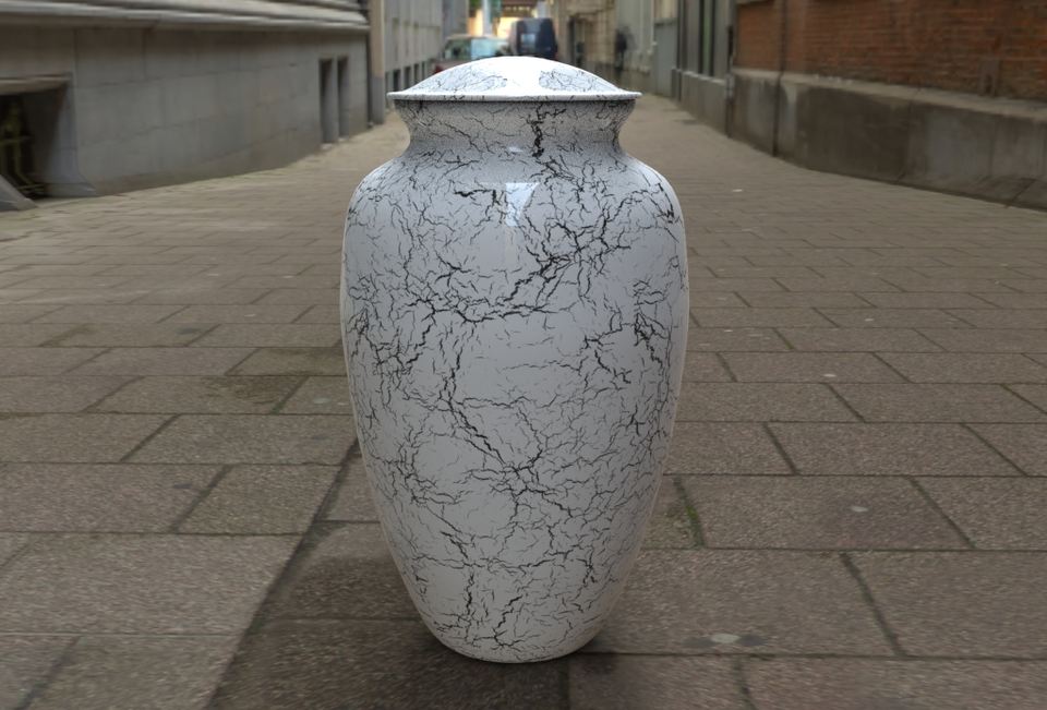 สีขาวหินอ่อนความสง่างามเผาศพโกศสำหรับเถ้ามนุษย์โกศจาก L MAX B ส่งออกผู้ผลิตอินเดียอุปกรณ์งานศพ