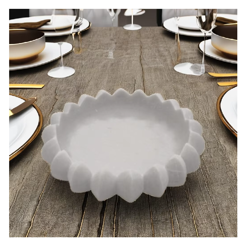 ถาดหินอ่อนสีขาวขัดเงา ลายดอกไม้ งานฝีมือโบราณ งานเลียนแบบโบราณ สวยงาม ผลิตภัณฑ์งานหินประณีต