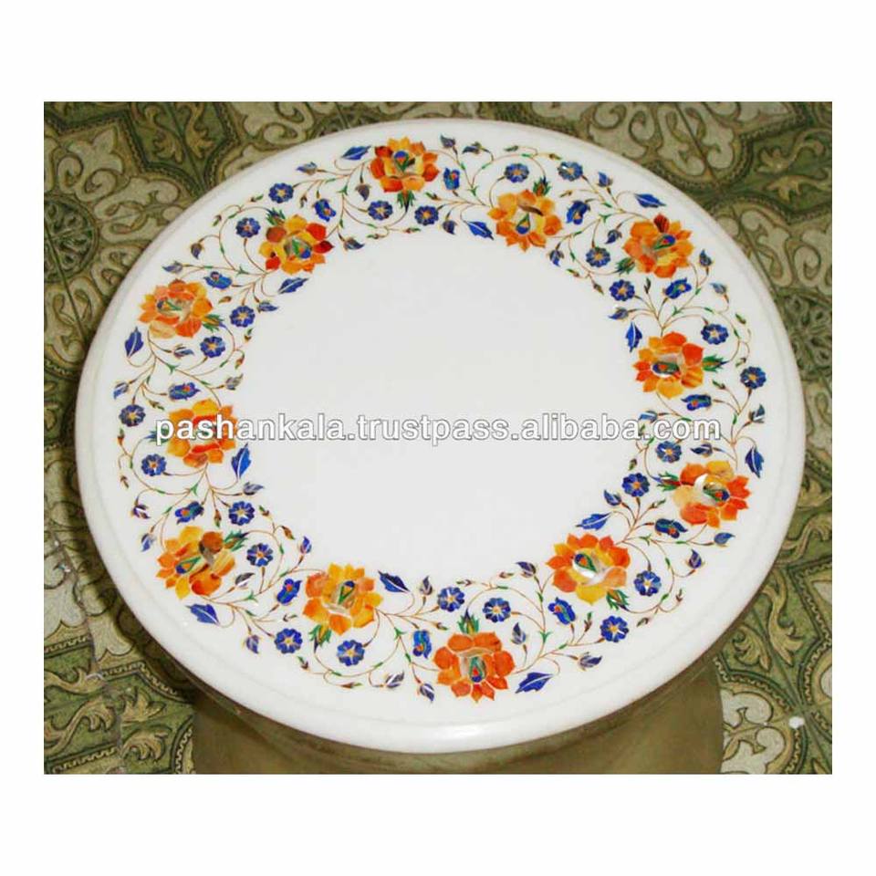 หินอ่อนสีขาวดอกไม้ฝัง Pietra Dura บนโต๊ะ