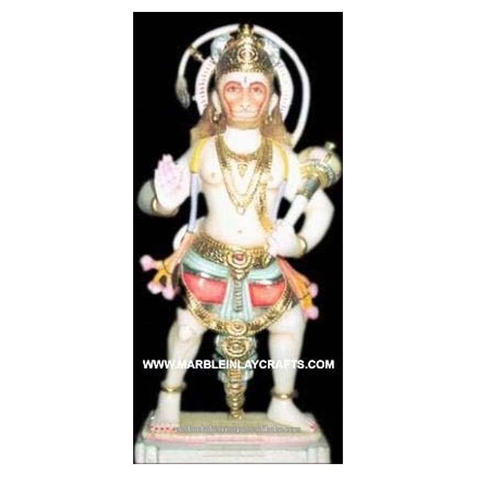 หินอ่อนสีขาวหนุมานจีรูปปั้นยืนอยู่บนแพลตฟอร์ม