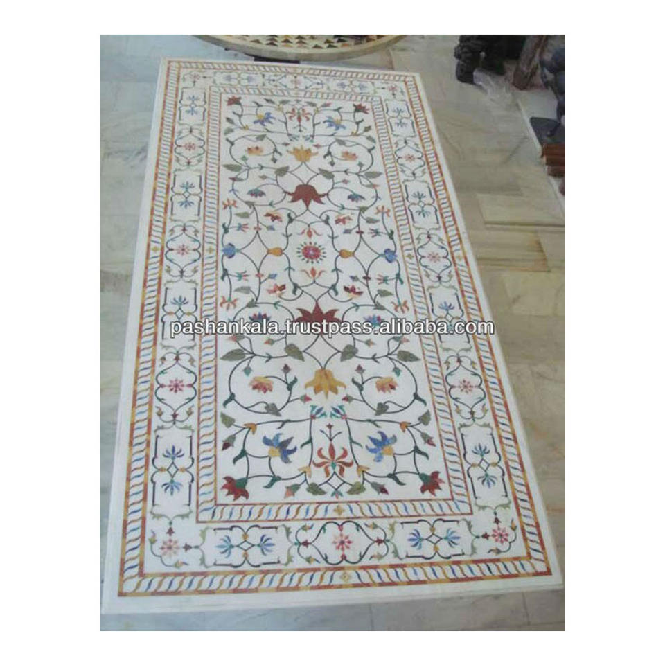 ชื่อสินค้า:ท็อปโต๊ะอาหารหินอ่อนสีขาวฝังลาย Pietra Dura สุดพิเศษ