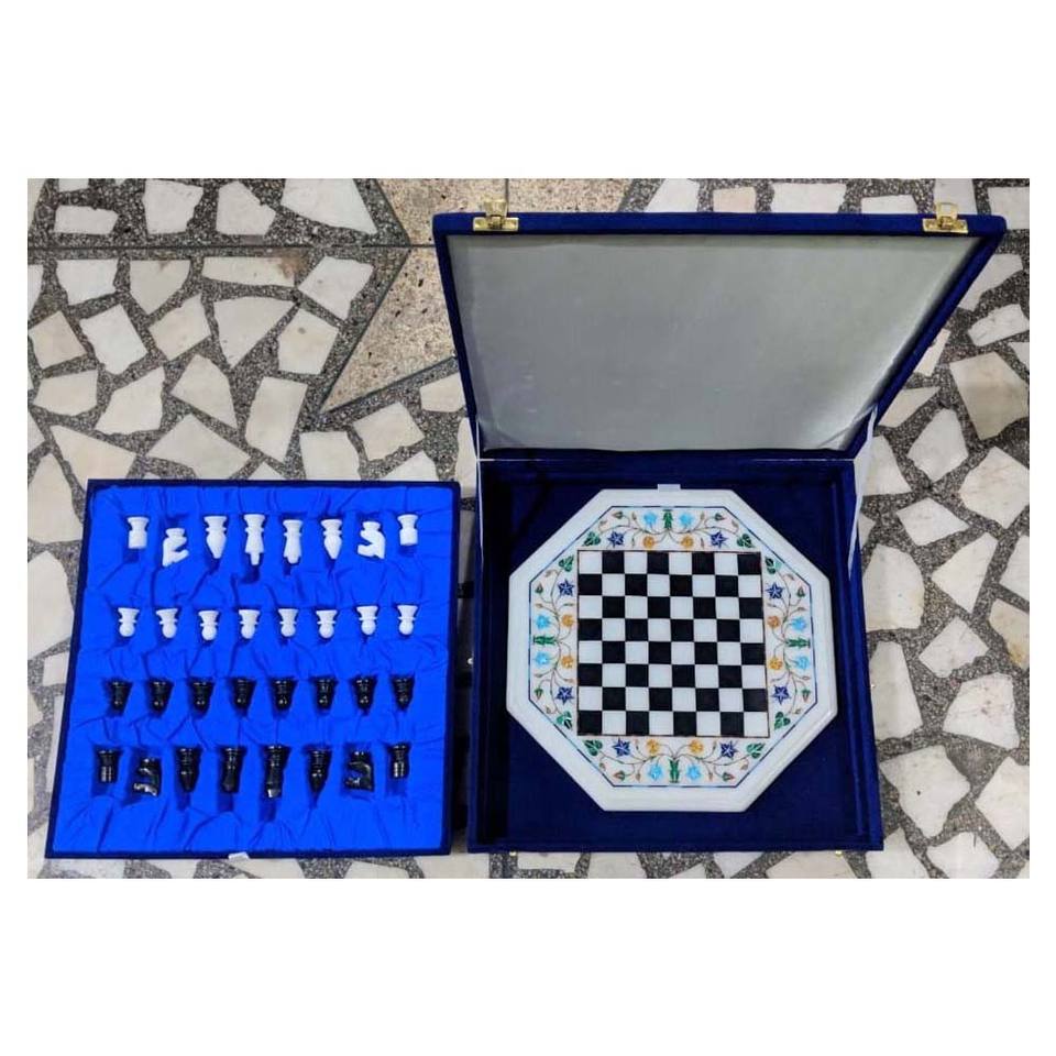 แผ่นหมากรุกฝังหินอ่อนสีขาว