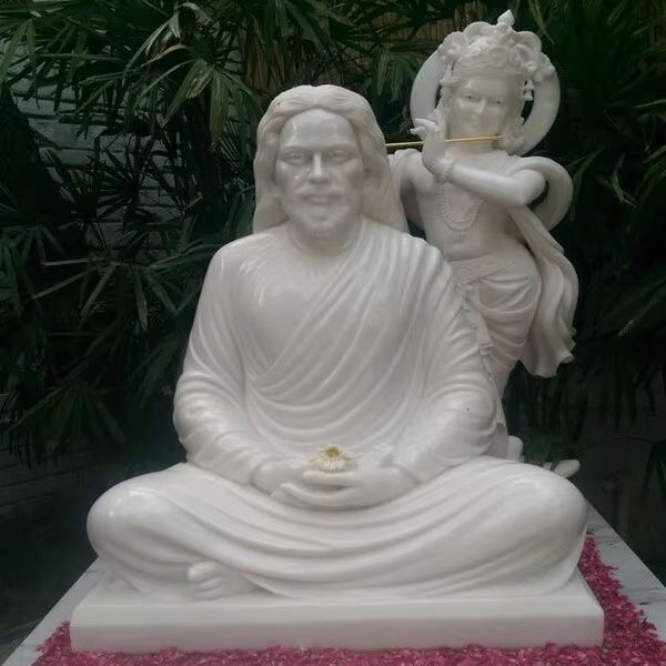 รูปปั้นพระเยซูคริสต์และพระพุทธเจ้าคริสนา ทำจากหินอ่อนสีขาว สำหรับสวนสมาธิ วัดศักดิ์สิทธิ์ ศิลปะแห่งความสามัคคีทางจิตวิญญาณ งานประติมากรรมศิลปะ ทำด้วยมือ