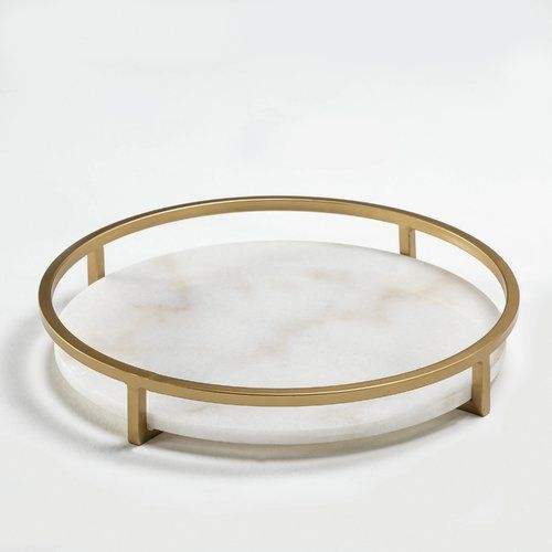 ถาดเสิร์ฟขนมหินอ่อนและโลหะหินอ่อนสีขาวออกแบบด้วยมือ