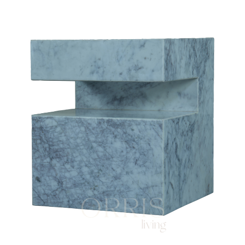 โต๊ะข้างทรงสี่เหลี่ยมทำจากหินอ่อนสีขาว งานแฮนด์เมด สไตล์โมเดิร์น เฟอร์นิเจอร์หรูหรา รูปทรงเรขาคณิต เหมาะสำหรับตกแต่งห้องนั่งเล่น ห้องนอน โรงแรม ใช้เป็นโต๊ะข้างเตียง