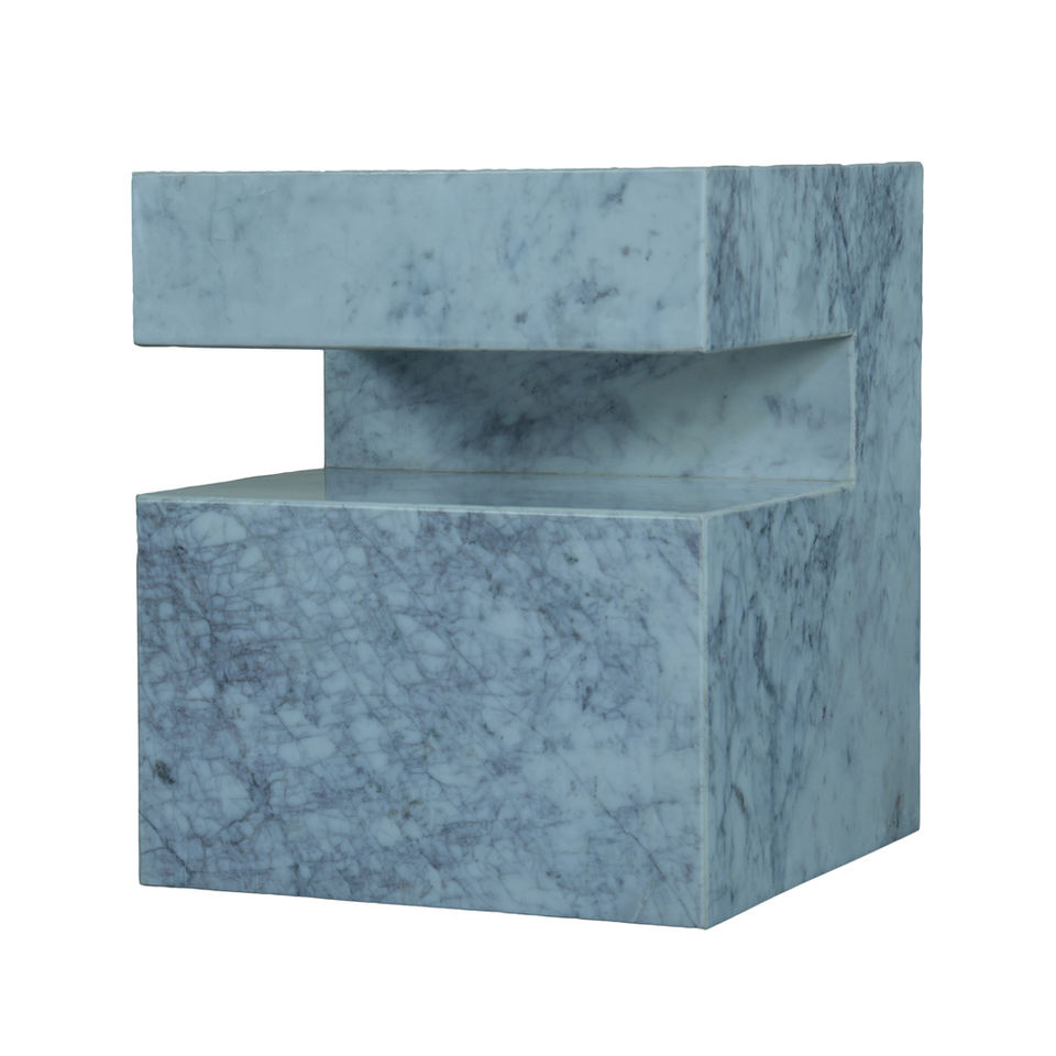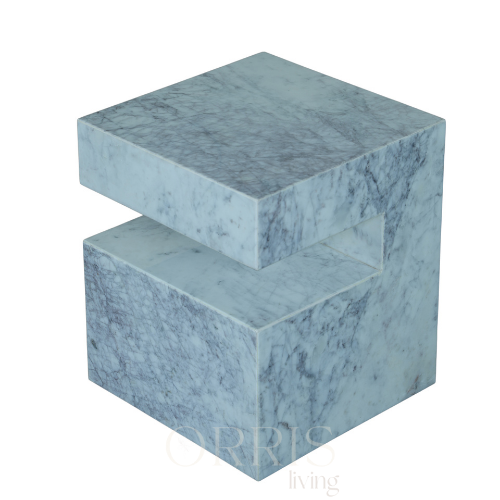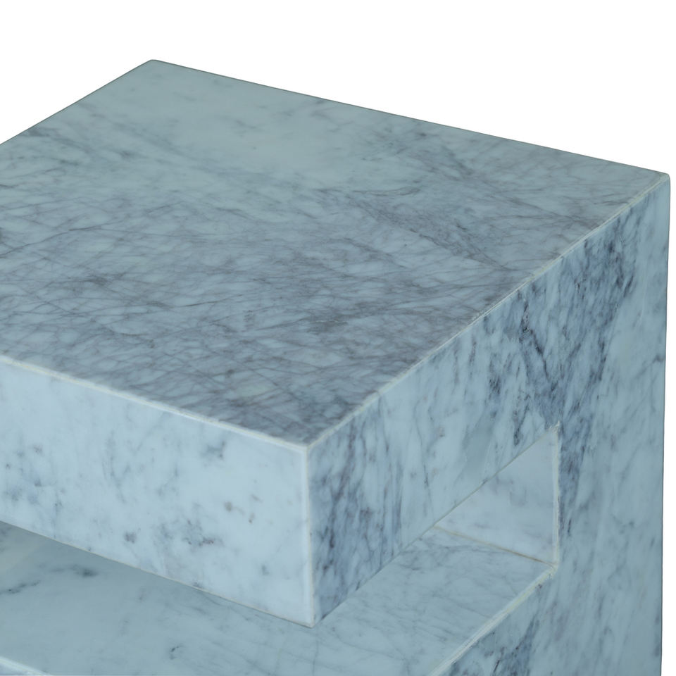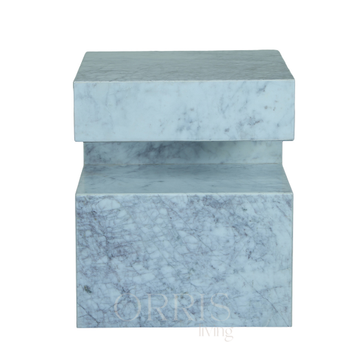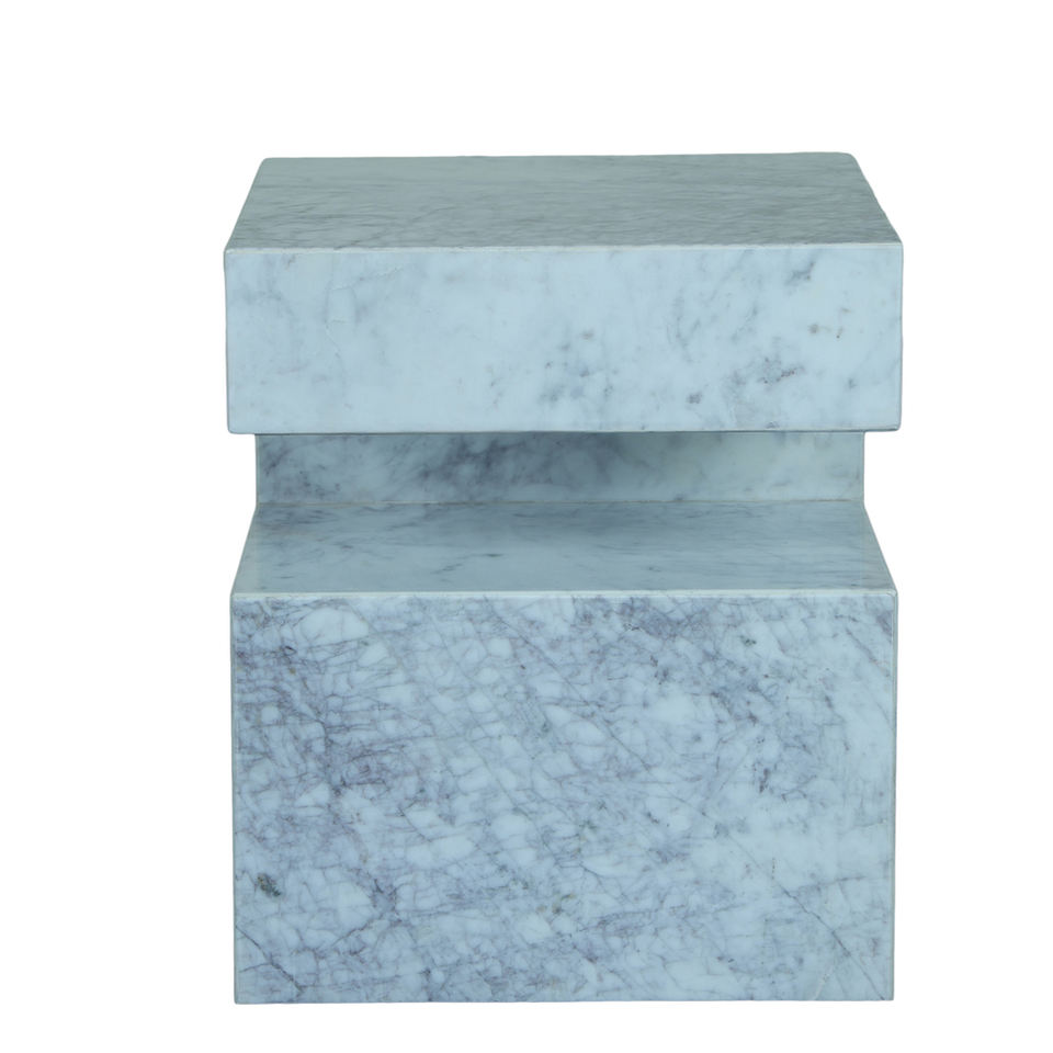 White Marble Nightstand Modern Handmade Square Block Luxury Geometric Furniture Dining Living Room Bedroom Farm House Decor Side