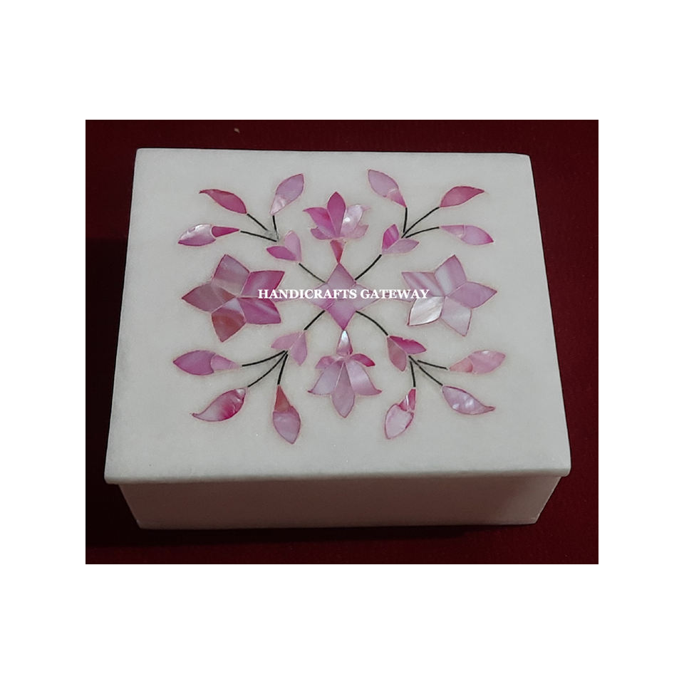 กล่องเครื่องประดับฝังมุกลายหินอ่อนสีขาวรูปทรงสี่เหลี่ยมดีไซน์ดอกไม้ทำมือใช้สำหรับบรรจุและให้เป็นของขวัญ