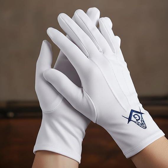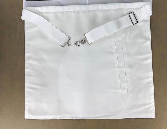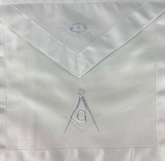 ผ้ากันเปื้อนมาสเตอร์เมสันสีขาว พร้อมลายปักสี่เหลี่ยมและเข็มทิศและดวงตาที่มองเห็นทุกสิ่ง สายปรับได้ – เครื่องประดับฟรีเมสันนิยม