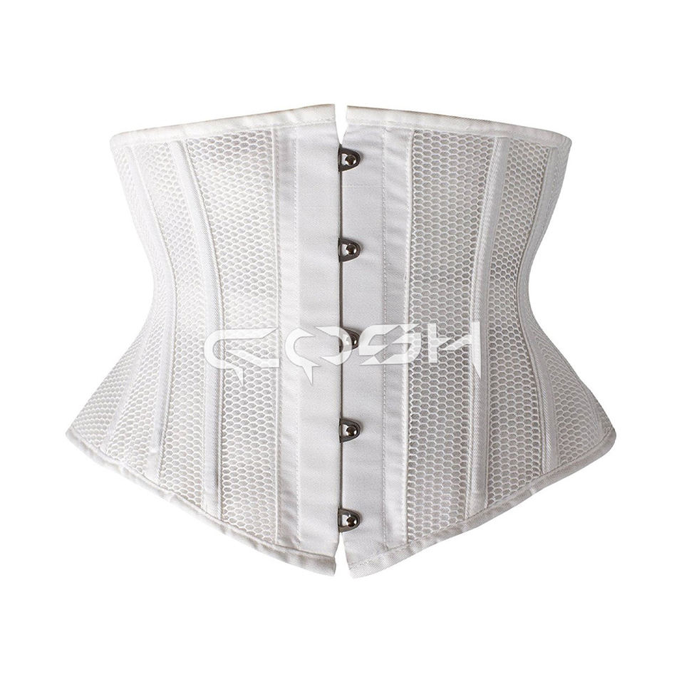 คอร์เซ็ทตาข่ายสีขาวแบบสั้น ทรงใต้หน้าอก พร้อมตัวล็อคด้านหน้า