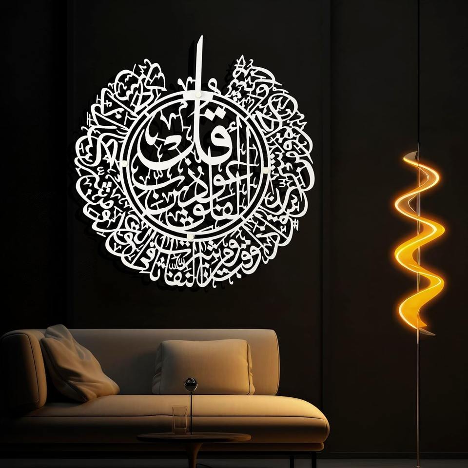 การตกแต่งผนังด้วยอักษรอาหรับทำจากโลหะสีขาวสำหรับให้เป็นของขวัญการจัดแสดงในบ้านห้องนั่งเล่นและการตกแต่งห้องสวดมนต์จากอินเดีย