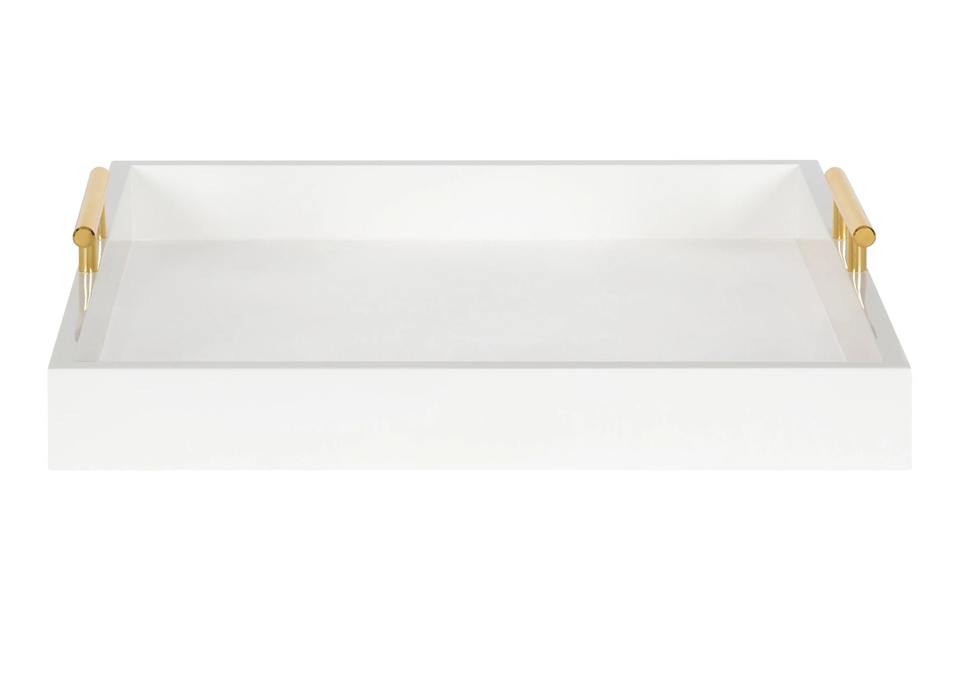 ถาดโลหะสีขาวพร้อมที่จับสีทองออกแบบมาสำหรับการรับประทานอาหารแบบเรียบง่ายทันสมัยและใช้งานได้จริงในชีวิตประจำวันจากอินเดีย