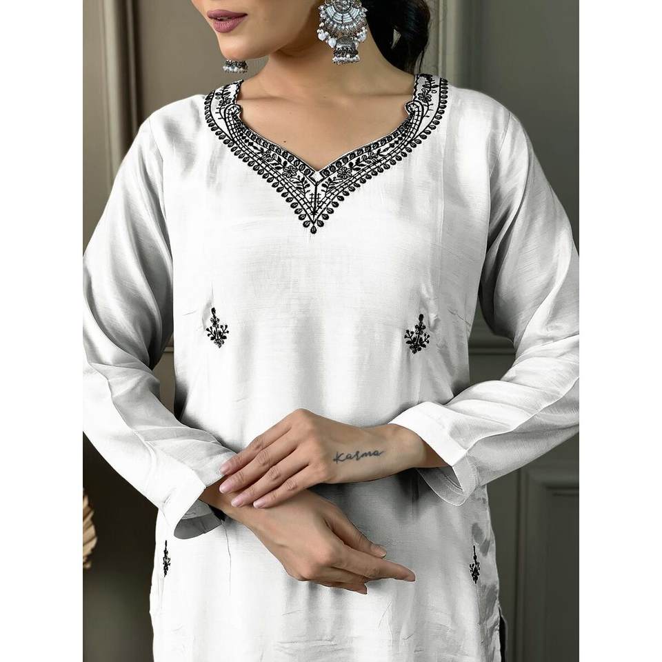 ชุดเดรสผ้าไหมสีขาวงานปักลายลำดับผ้าไหมโรมันชุดเดรสใส่ตอนเย็นดูมัตตาของตกแต่งประดับเลื่อมที่สวยงามด้านบนด้านล่าง