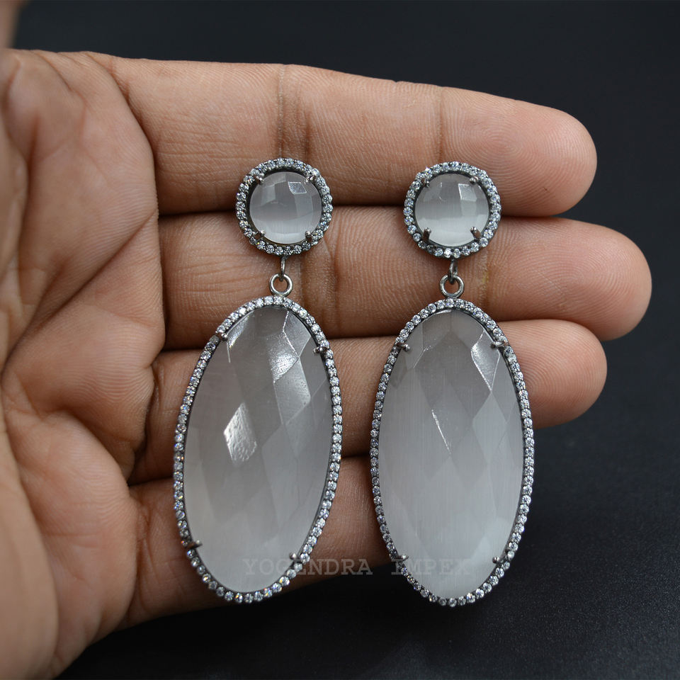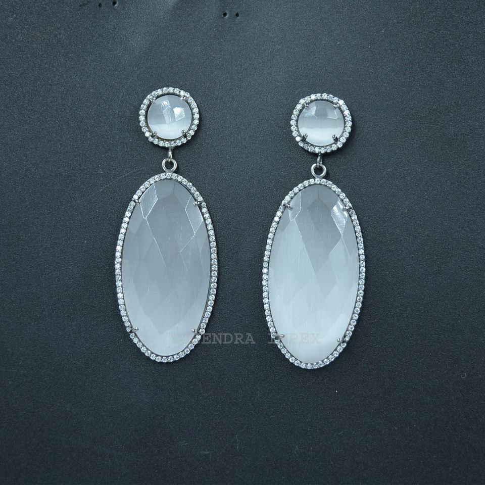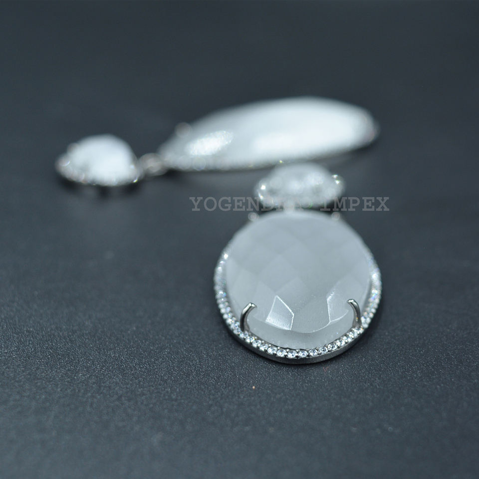 สีขาว monalisa กับ CZ พลอยต่างหูเงินเครื่องประดับเงินต่างหูเงินแท้925ทำด้วยมือลดลงเงินสำหรับผู้หญิง