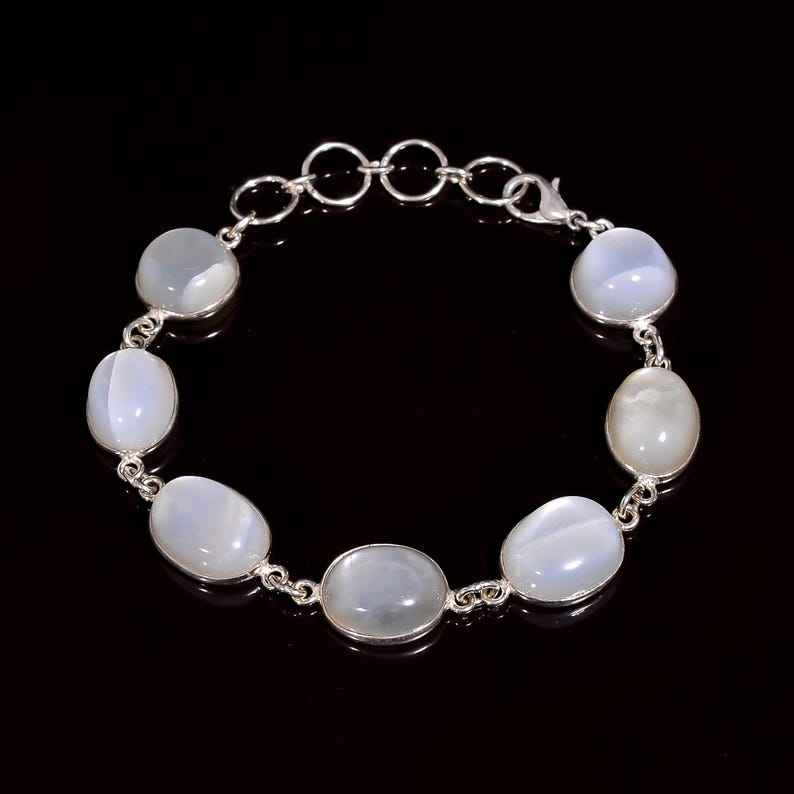 กำไลข้อมือเทนนิสเงินแท้ 925 ประดับมูนสโตนสีขาว ทำมือ ประดับด้วยพลอยหลายเม็ด คุณภาพสูง ของขวัญสำหรับผู้หญิงในโอกาสหมั้น