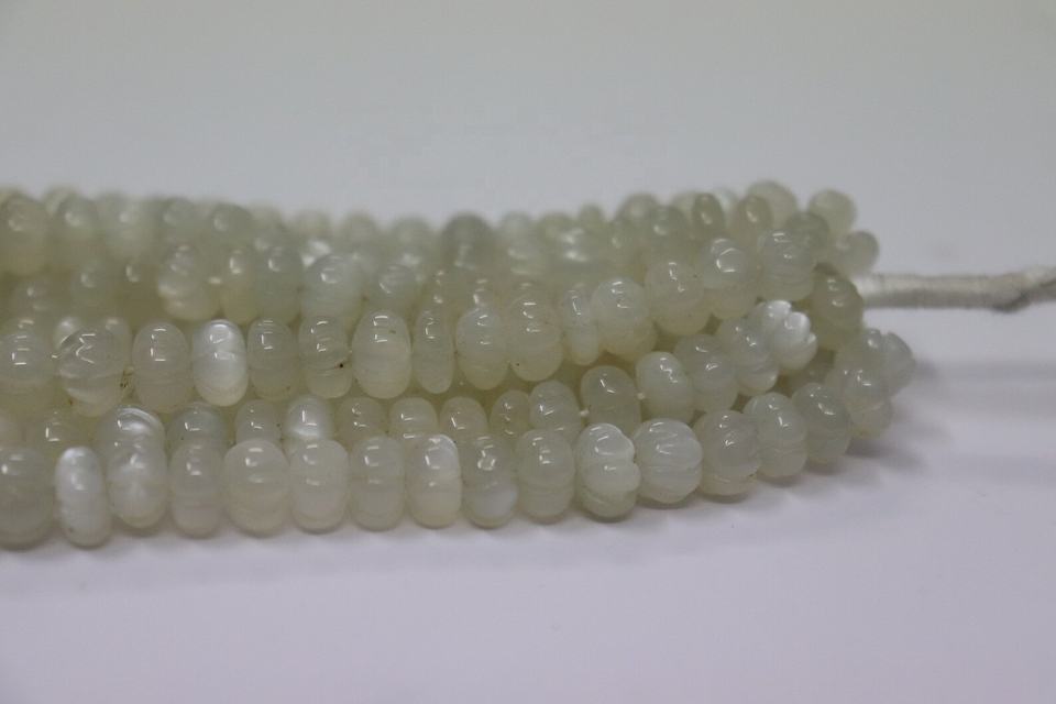 ลูกปัดมูนสโตนสีขาวทรงรอนเดลล์เรียบสำหรับทำเครื่องประดับ ร้อยเป็นสาย ลูกปัดทรงเมลอน