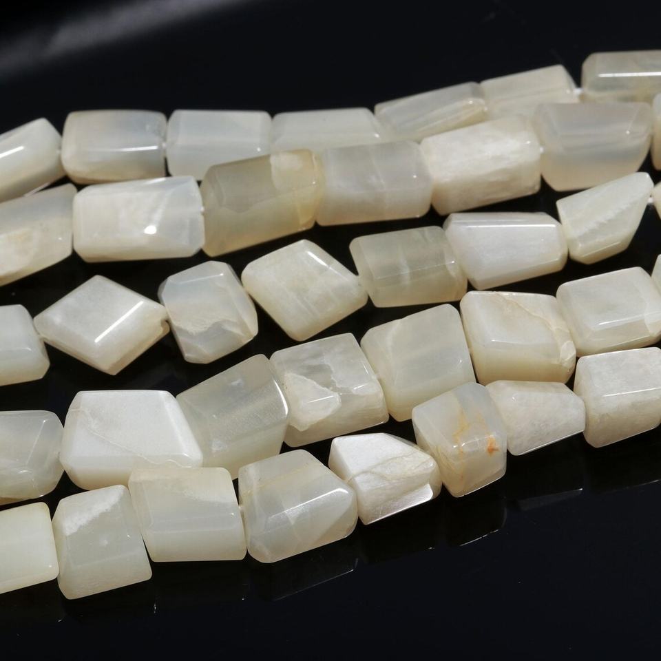 ลูกปัดหินมูนสโตนสีขาวธรรมชาติ ทรงก้อนเรียบ
