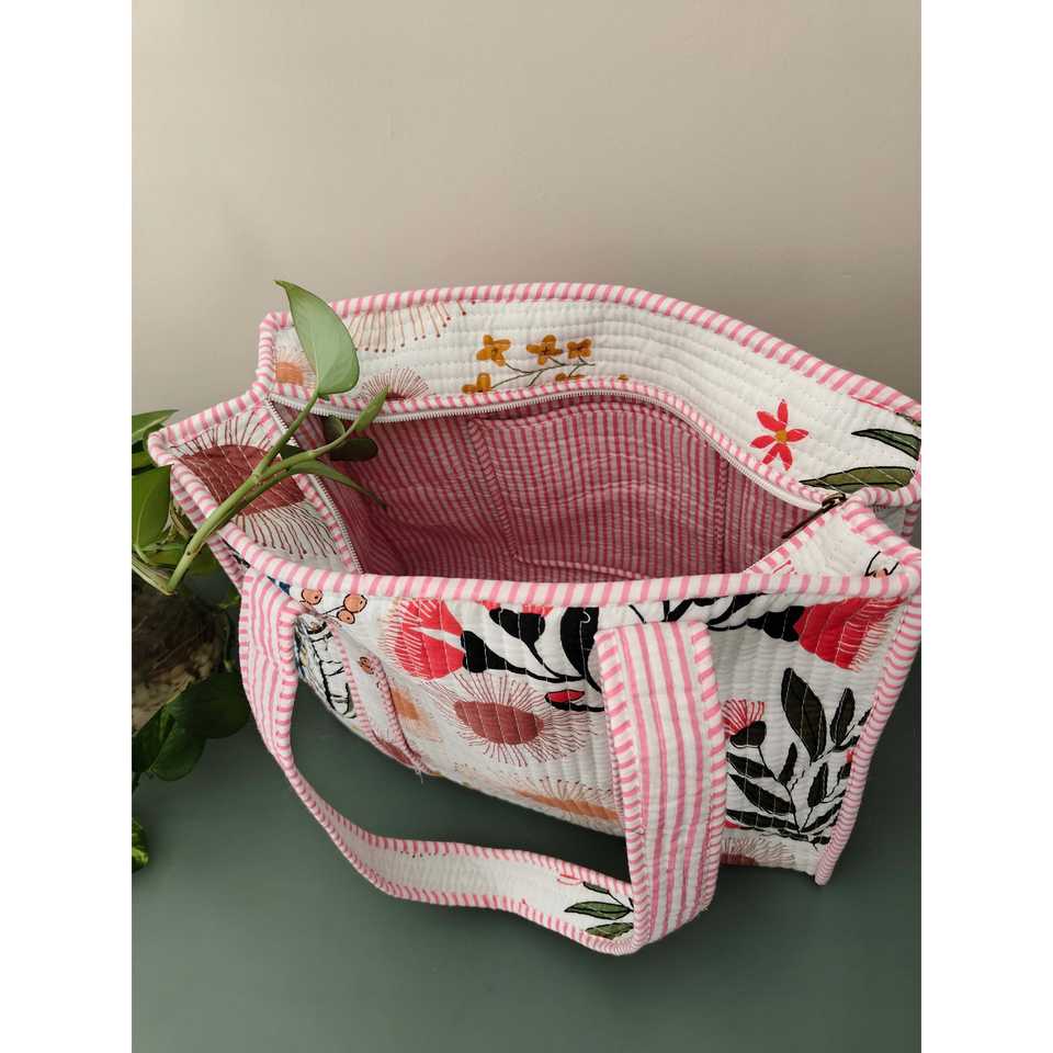 กระเป๋าถือขนาดเล็กสีขาวลายทุ่งหญ้าตอนเช้า ปิดด้วยซิป บุด้วยผ้าฝ้ายรีไซเคิล สไตล์โบฮีเมียน มีช่องด้านในแบบเย็บติดกัน สำหรับผู้หญิง