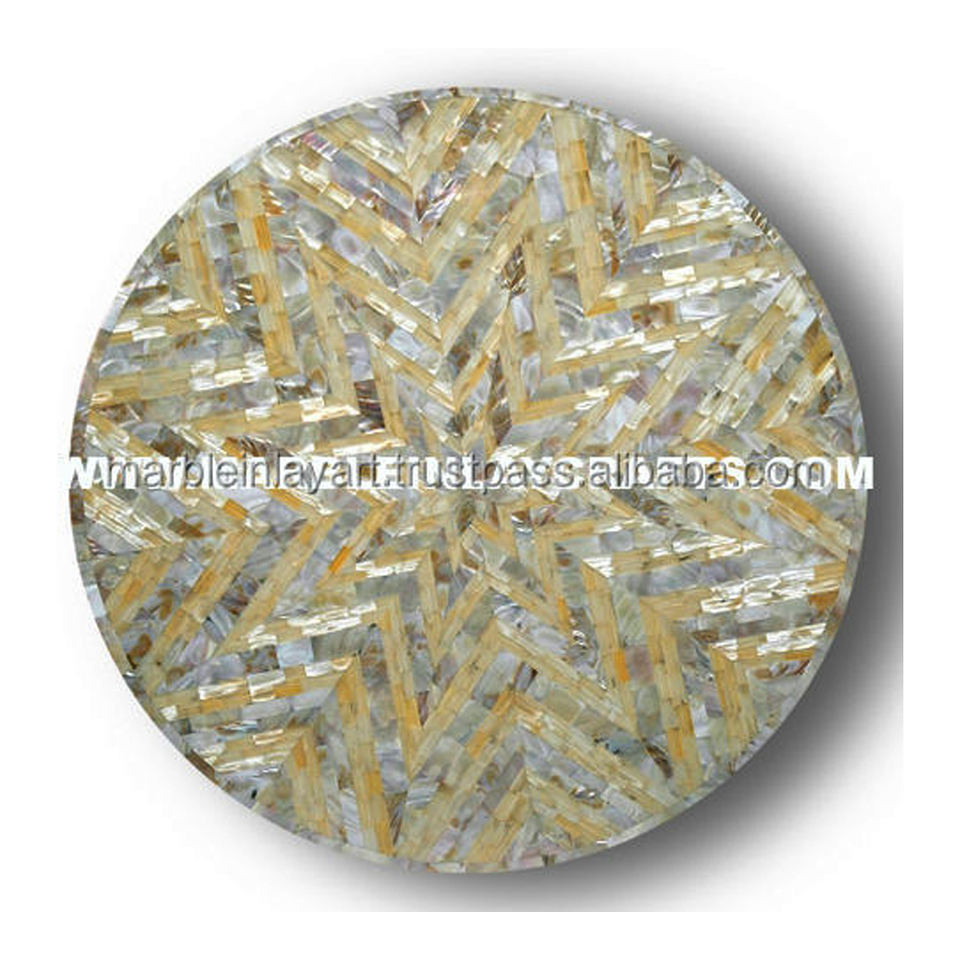 ท็อปโต๊ะทรงกลมทำจากมุกขาว