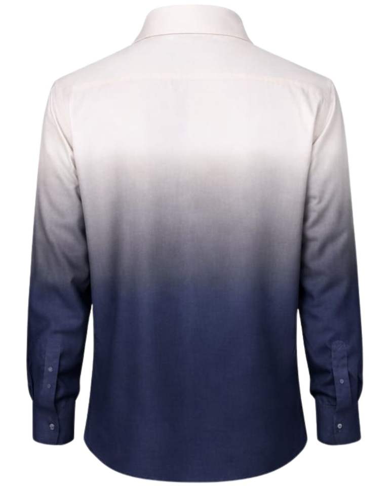 เสื้อเชิ้ตผู้ชายสีขาว-น้ำเงินไล่เฉด ผ้าฝ้ายพรีเมียม แขนยาว ติดกระดุม สวมใส่ได้ทั้งแบบเป็นทางการและลำลอง ผลิตตามสั่ง จำหน่ายส่ง