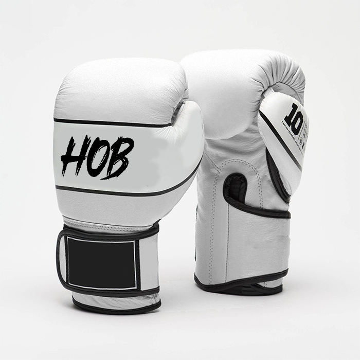 ถุงมือฝึกซ้อม MMA และมวยสากลหนังแท้สีขาวแบบ OEM พร้อมสายรัดแบบ Hook & Loop สำหรับมวยไทย ถุงมือชกมวยหนัง PU