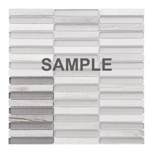 กระเบื้องโมเสคติดผนังแบบเรียงซ้อนกันกระเบื้องโมเสคผนังแบบเรียงซ้อนสีเทาหินอ่อนไม้โอ๊คสีขาว