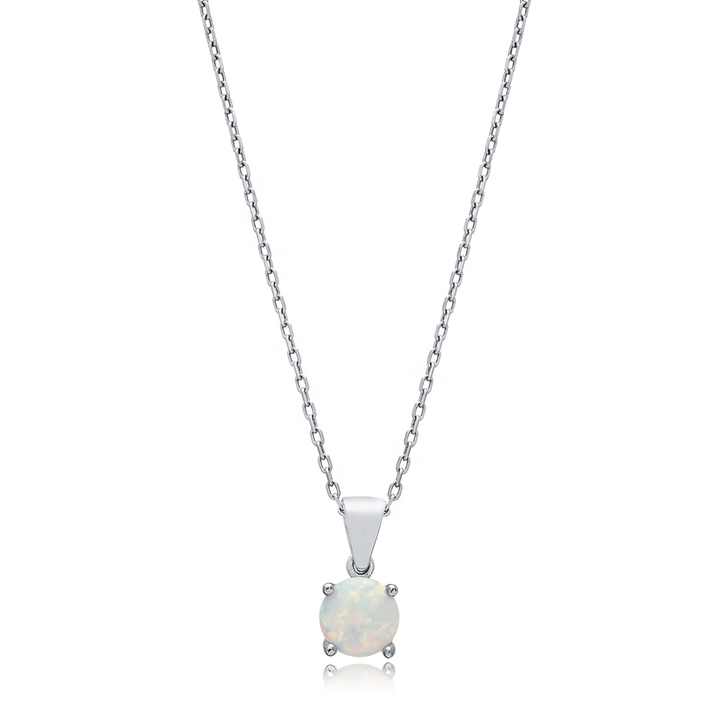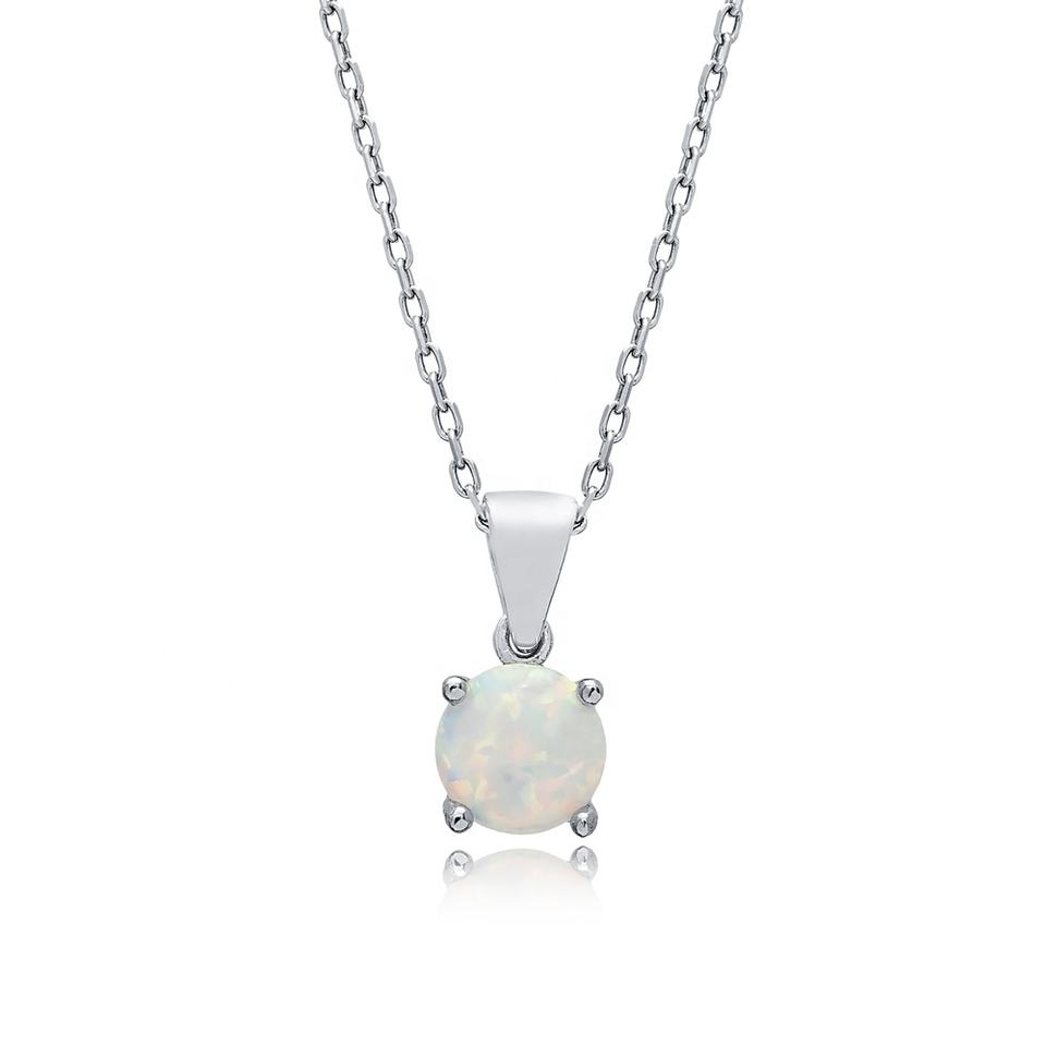 สร้อยโอปอลสีขาวทรงกลมประดับด้วยหิน CZ 925เงินสเตอร์ลิงทำด้วยมือแบบตุรกีสร้อยคอเครื่องรางเงินสเตอร์ลิง925สำหรับผู้หญิง