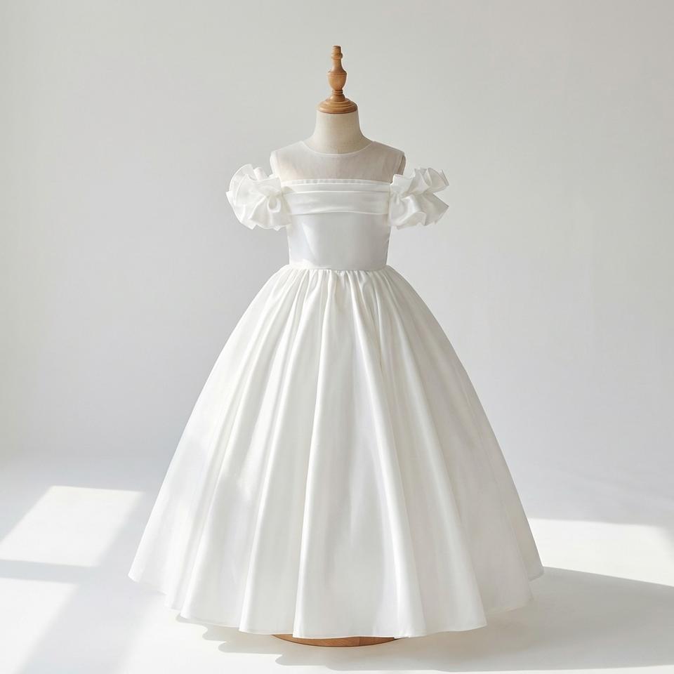 ชุดเดรสผ้าออร์แกนซ่าสีขาวแขนยาวสำหรับเด็กผู้หญิง ชุดสำหรับงานพิธีในโบสถ์ โรงเรียน หรืองานอีเว้นท์ เนื้อผ้านุ่มสบายผิว ขายส่งในยุโรป