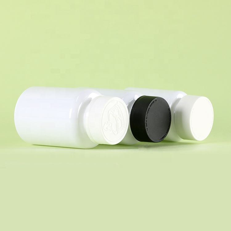 ขวดพลาสติก PET สีขาวสำหรับบรรจุยาเม็ด ขนาด 60 มล. 120 มล. 150 มล. 200 มล. 250 มล. 8 ออนซ์ พร้อมฝาเกลียวแบบป้องกันเด็กสำหรับแคปซูล
