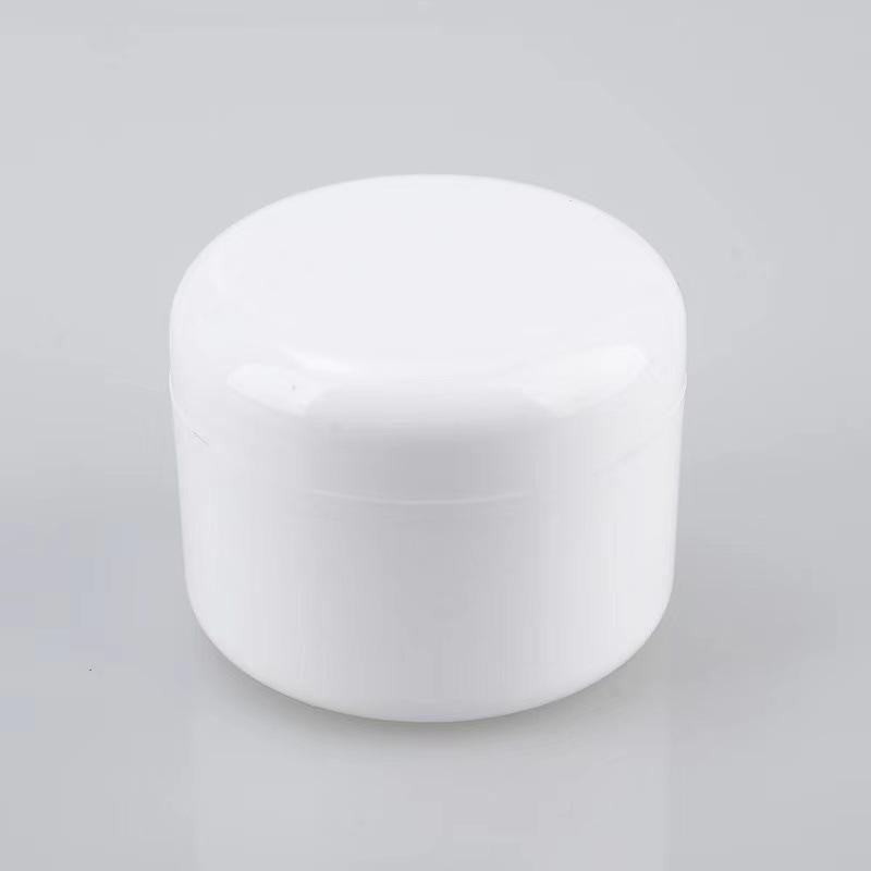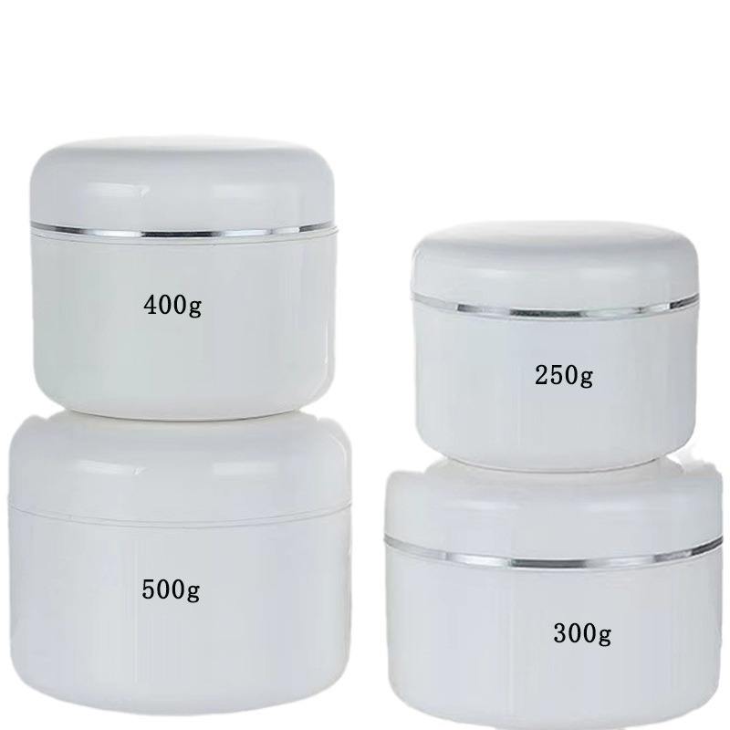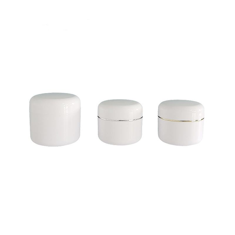 ภาชนะพลาสติก PP สีขาวสำหรับใส่ครีมเครื่องสำอางพร้อมขอบสีเงินฝาโดม10g 20g 50g 100G 250g ตัวเลือกปิดผนึกฝาเกลียวปั๊มร้อน