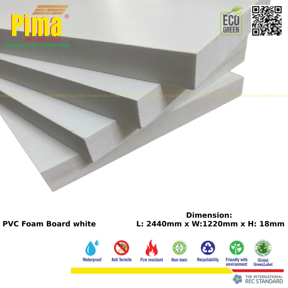 แผ่นโฟมพีวีซีสีขาวความหนา18มม. 0.6กรัม/ความหนาแน่น cm3ปราศจากสารตะกั่วแผงโฆษณาที่ใส่ใจสิ่งแวดล้อมสำหรับห้องครัวรหัส HS