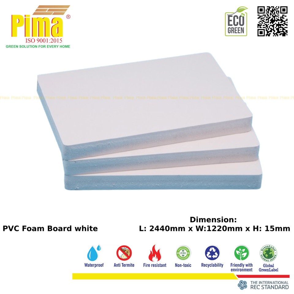 แผ่นโฟมพีวีซี WPC สีขาวกันน้ำสำเร็จความหนา8มม. และความหนาแน่น0.6กรัม/cm3สำหรับแผงโฆษณา