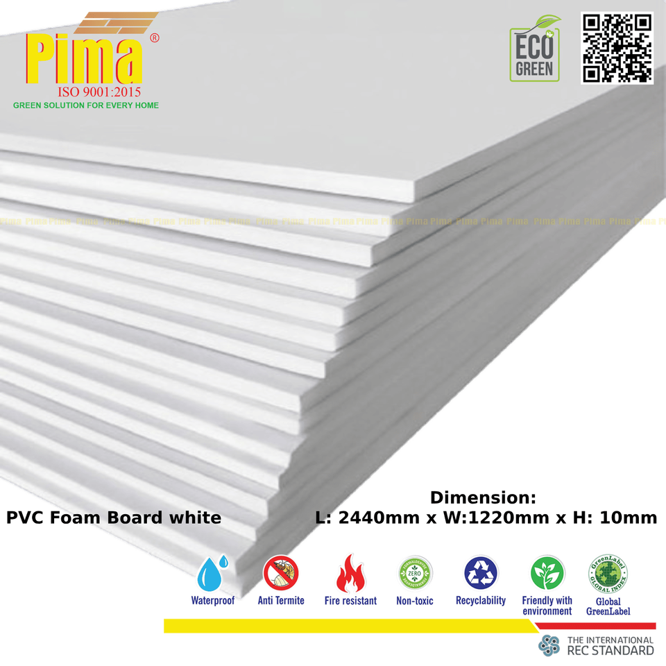 แผ่นโฟมพีวีซีสีขาวหนา18มม. หนา0.6กรัม/บอร์ดโฆษณาตกแต่งความหนาแน่น cm3น้ำหนักเบา