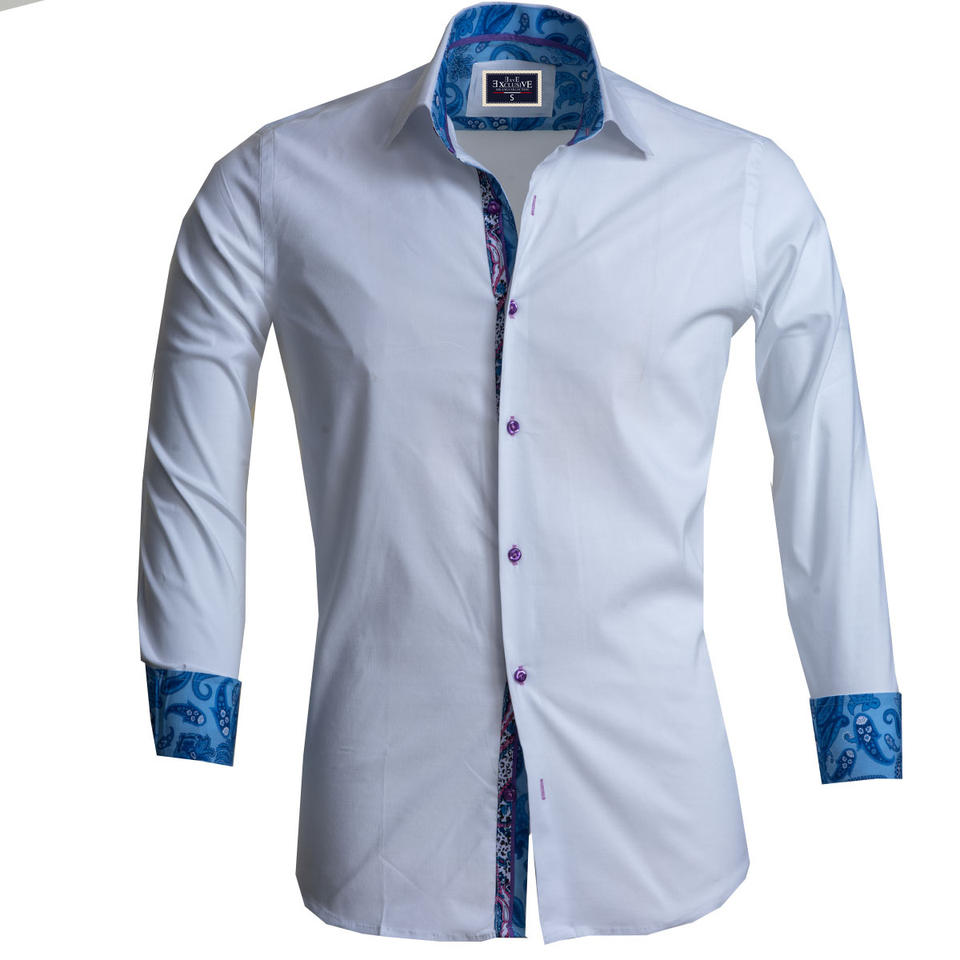 สไตล์:เสื้อเชิ้ตผู้ชายสีน้ำเงินคอ