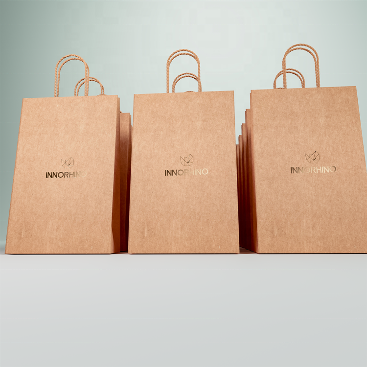 ถุงกระดาษสีขาวคราฟท์ที่มีโลโก้พิมพ์การผลิต INNORHINO