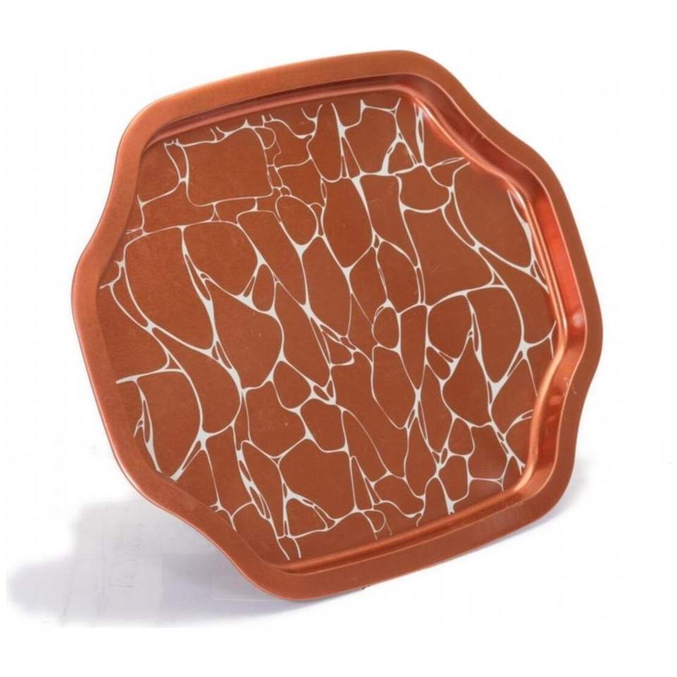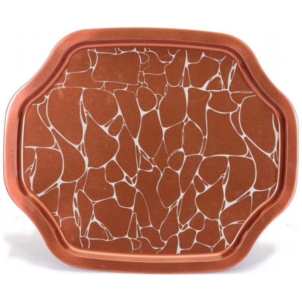 ถาดตกแต่งขอบโค้งลายสีขาวบนพื้นสีน้ำตาล รุ่น Kontensan EF166B4 ขนาด 285x400 มม.