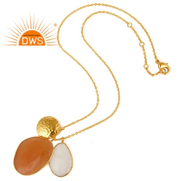 สีขาวพีชมูนสโตนทองเหลืองชุบทอง18K สร้อยคอ Charm ผู้ผลิตเครื่องประดับสำหรับหญิง