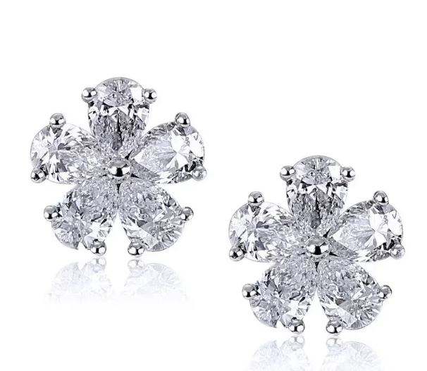 ต่างหูเพชรโมอิสสีขาวรูปลูกแพร์ต่างหูออกแบบตามสั่งสำหรับชุดราตรี