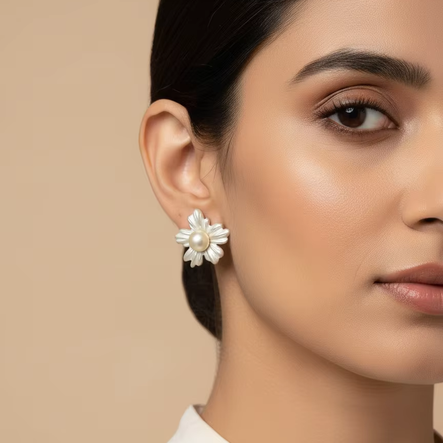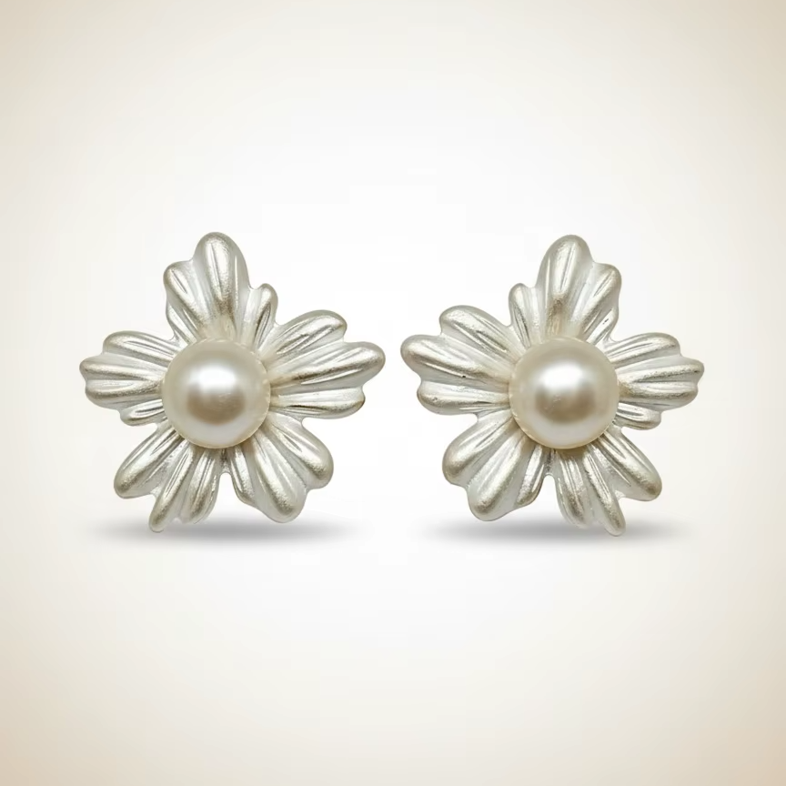 ต่างหูรูปดอกไม้มุกสีขาวพร้อมเคลือบเปลือกหอยสำหรับเครื่องประดับแฟชั่นสตรี