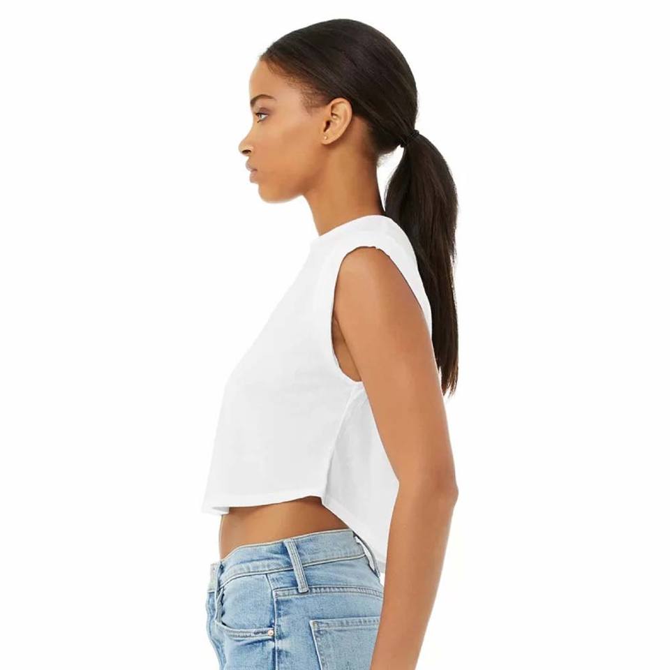 เสื้อครอปสำหรับผู้หญิงเสื้อครอปแขนสั้นผ้าคอตตอนใส่เล่นกีฬาวิ่งลำลองสีขาวธรรมดา