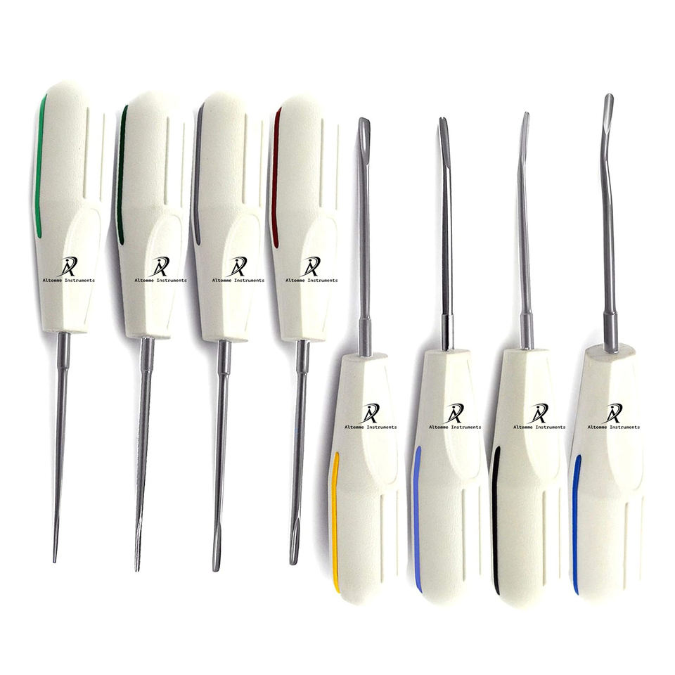 ชุดลิฟต์พลาสติกสีขาวจำนวน8ชิ้นเครื่องมือมืออาชีพสำหรับการยกรากฟันศัลยกรรมช่องปาก