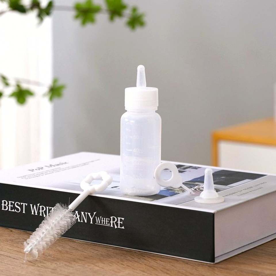 ขวดนมอัดพลาสติกสีขาวสำหรับแมวและสุนัขพร้อมเครื่องป้อนนมคุณภาพสูงสี่ชุด