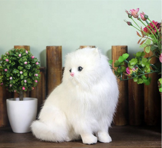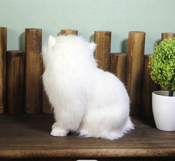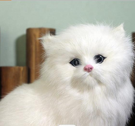 ตุ๊กตาแมวเปอร์เซียสีขาว ขนนุ่มเหมือนจริง ท่าทางกำอั่งเหมือนสัตว์จริง ทำด้วยมือ