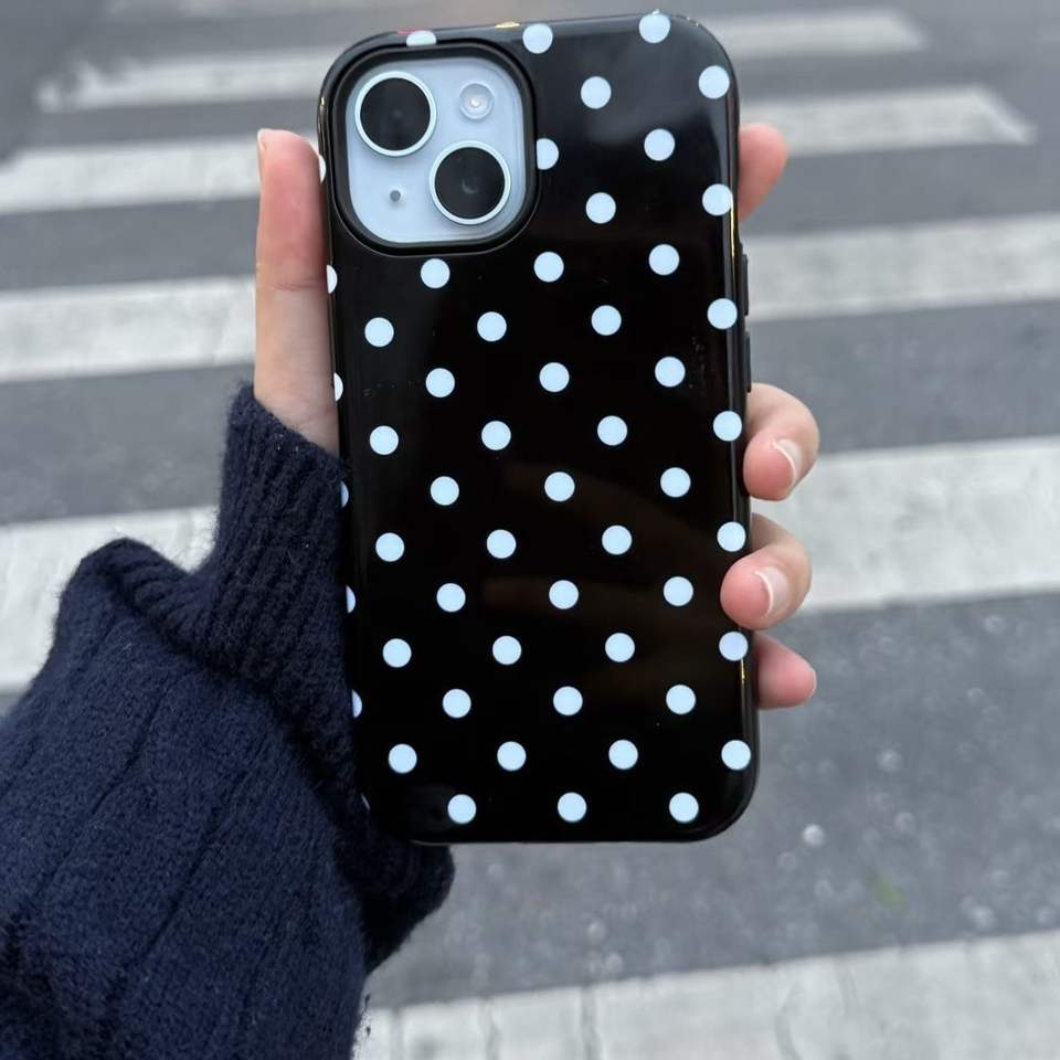 White Polka Dot Dark Style Suitable for iPhone 14, 15, 16, 17 Jelly Case, 17 Pro Max Soft Case, 16 Plus Large Hole Simple 11