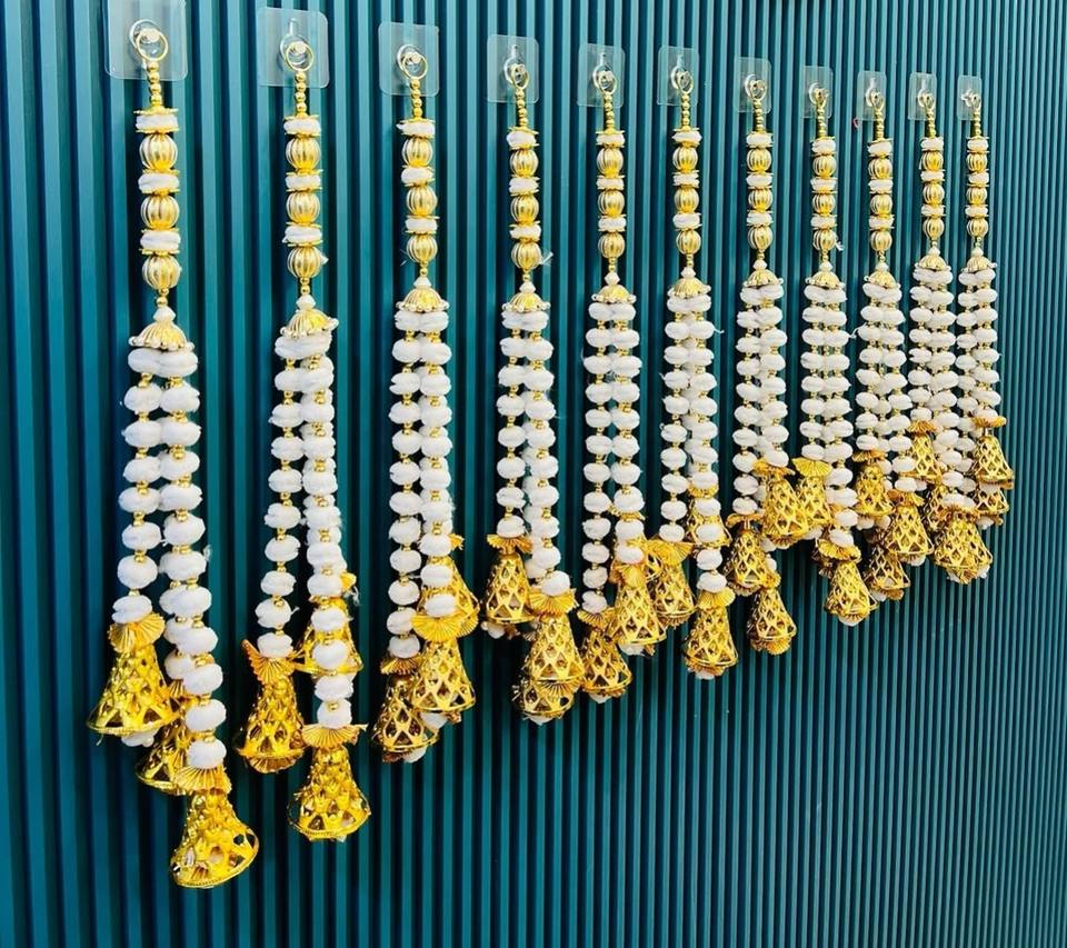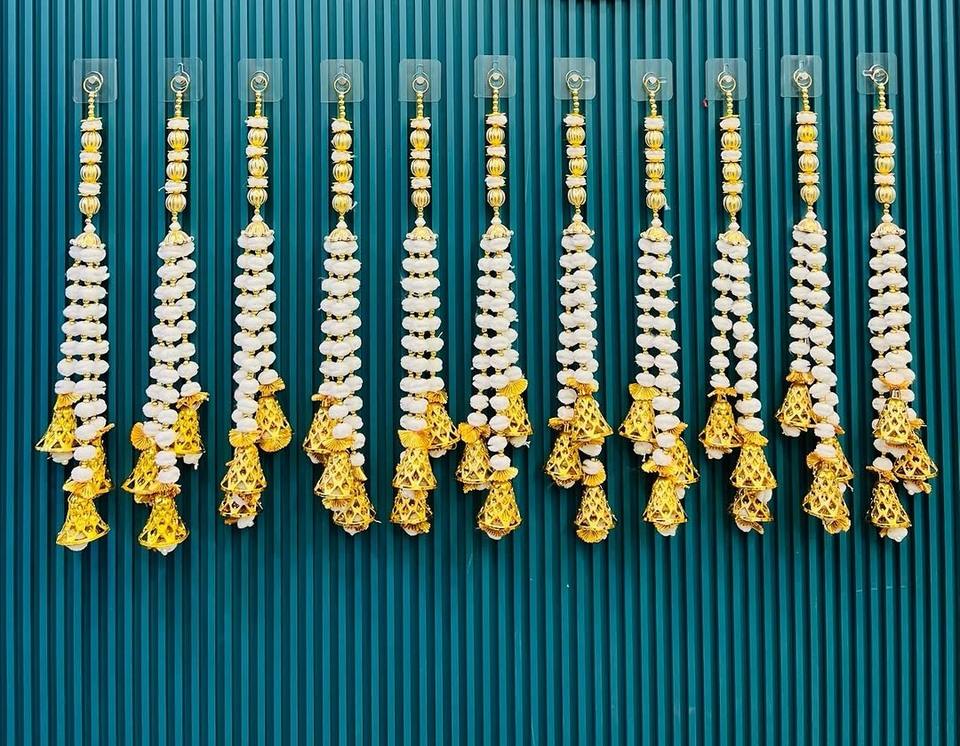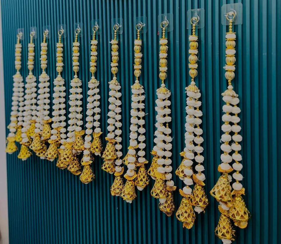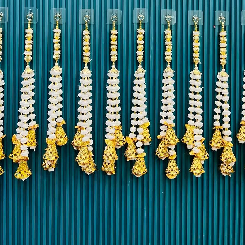 พวงมาลัยปอมปอมสีขาวและกระดิ่ง – งานแต่งงานแบบอินเดีย, ตกแต่งมันดาปและเวที, ฉากหลังดอกไม้สีขาว, ตกแต่งพูจาและดิวาลี