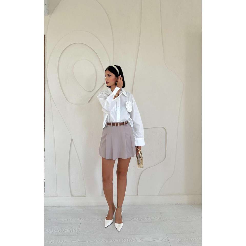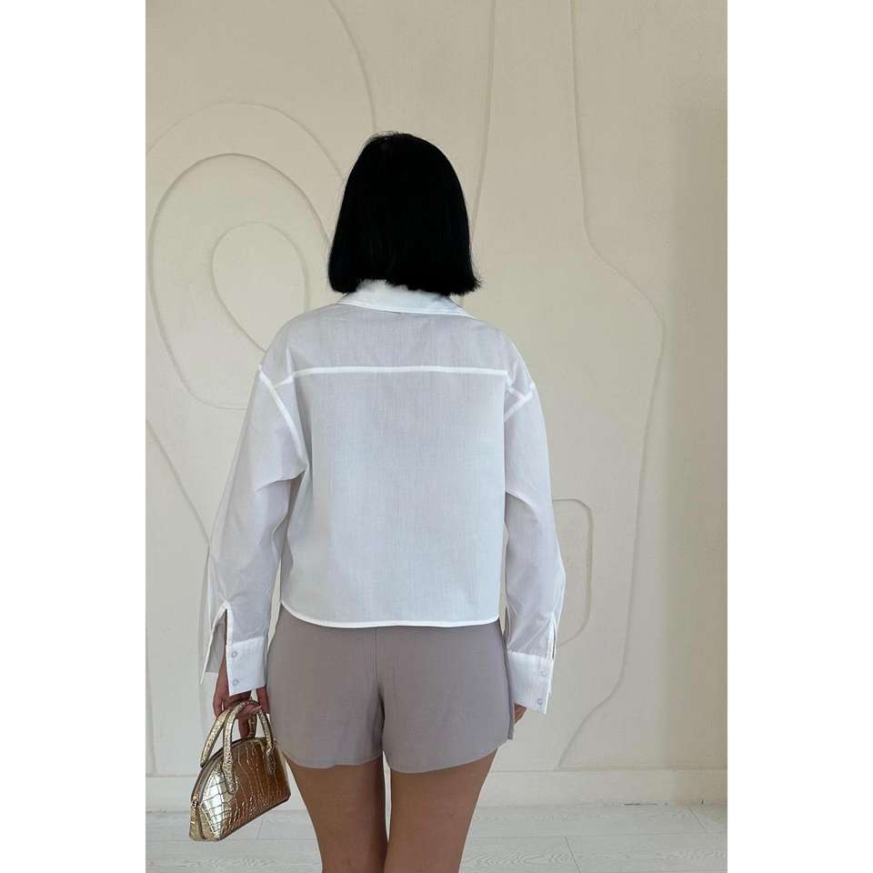 เสื้อเชิ้ตป๊อปลินสีขาว แขนยาว ทรงคลาสสิกสำหรับผู้หญิง สไตล์ออฟฟิศ แต่งแผงผ้า