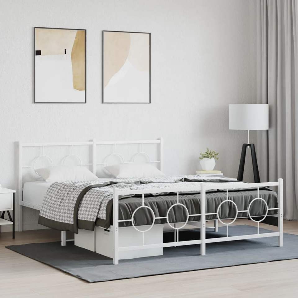 โครงเตียงเหล็กเคลือบผงสีขาวขนาดคิงไซส์ ประเภทสินค้าเตียงโลหะ