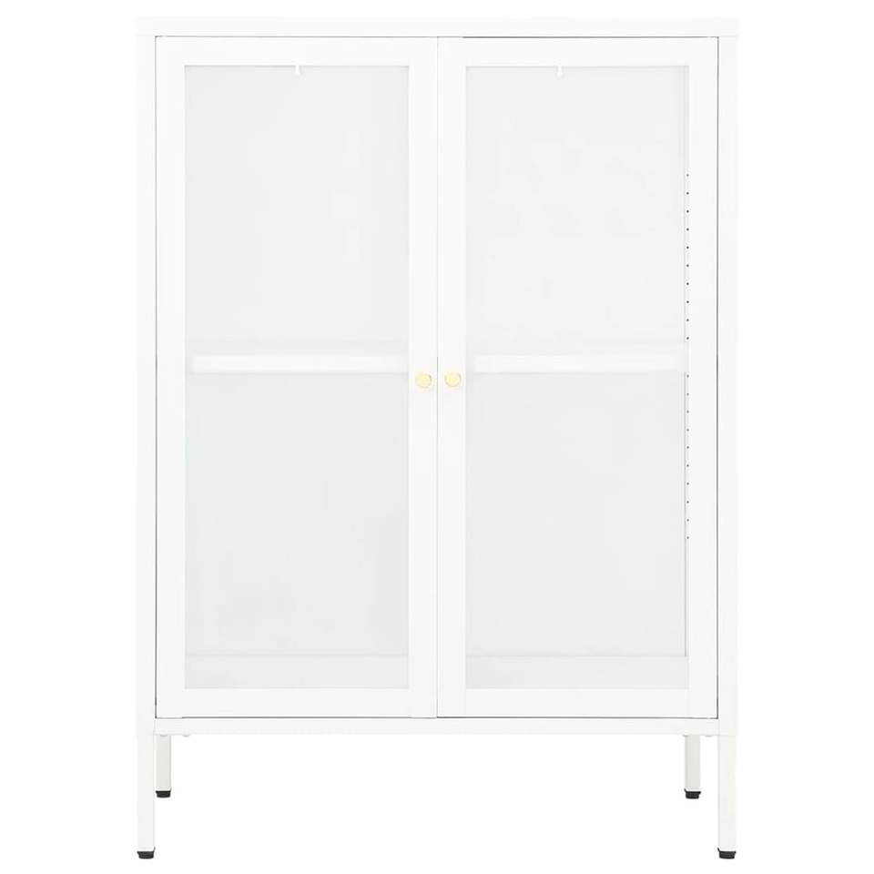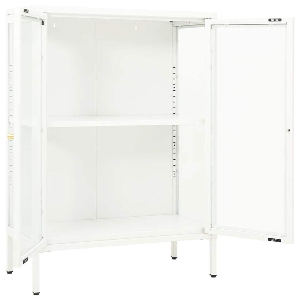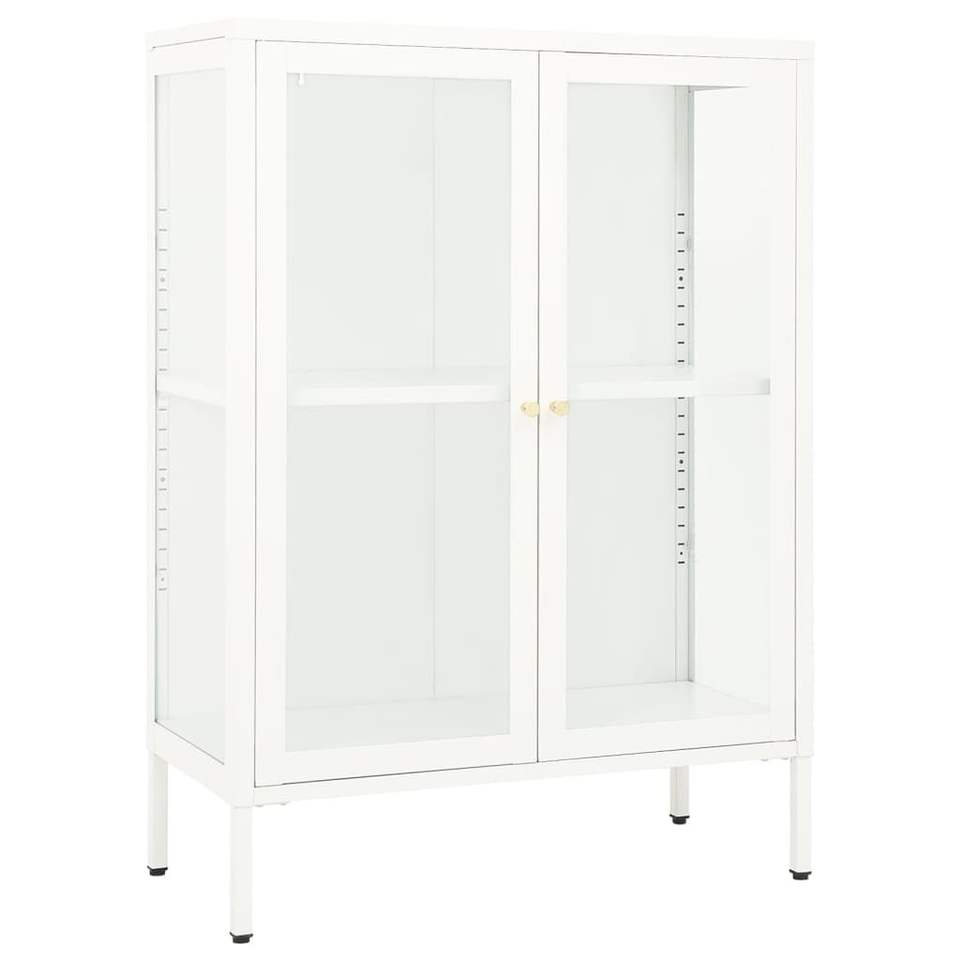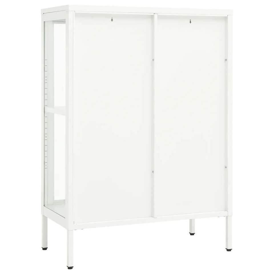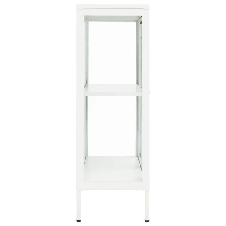 ตู้ข้างเหล็กเคลือบสีขาวพร้อมกระจกนิรภัย ตู้เก็บของขนาดกลางสำหรับห้องนั่งเล่น