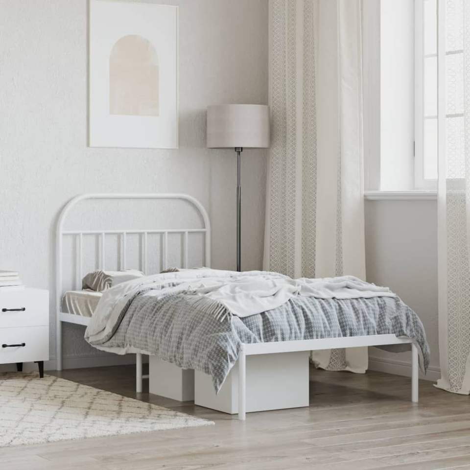 โครงเตียงเหล็กเคลือบผงสีขาวแบบเตียงคู่รูปทรงสี่เหลี่ยมผืนผ้า