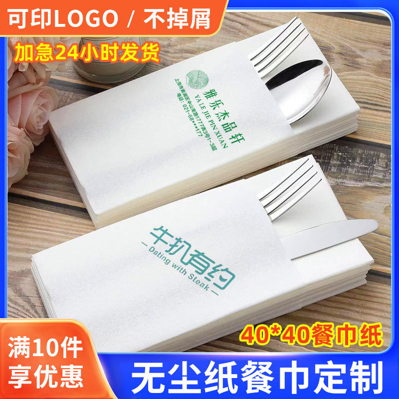 กระดาษเช็ดปากสำหรับห้องปลอดเชื้อ สีขาว พิมพ์ลาย ขนาด 40x40 ซม. แบบใช้แล้วทิ้ง 3 ชั้น พร้อมโลโก้แบบกำหนดเอง ผิวสัมผัสพิเศษ สำหรับใช้ในโรงแรม